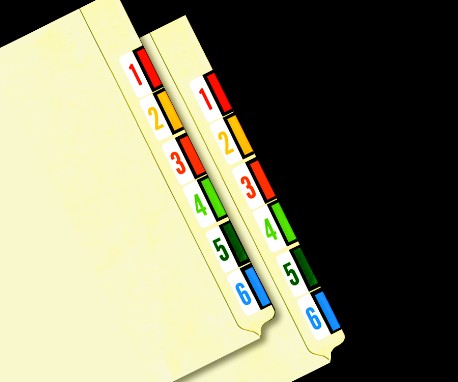 Bekleben Sie die Griffleiste der Mappe mit laminierten Etiketten oder gedruckten Papierstreifen: ob numerisch, alphabetisch, alphanumerisch, mit Monats- oder Jahresetiketten.
